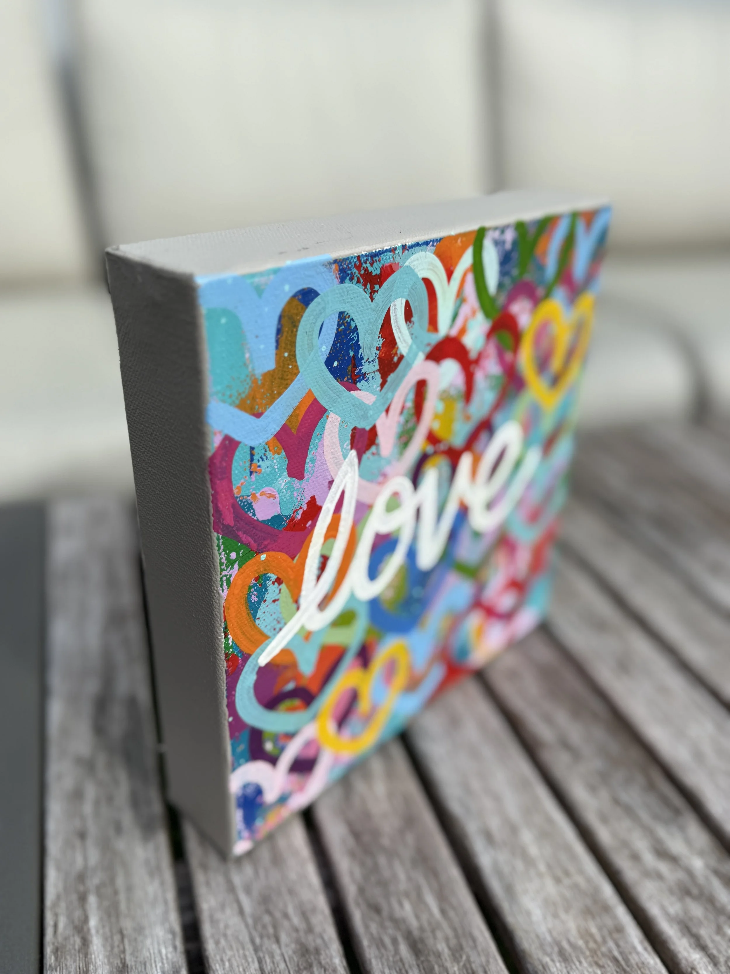 Bring joy to your space with All Over Hearts, an 8x8 vibrant acrylic painting on canvas. Uplifting, modern floral art—ready to hang and brighten any room